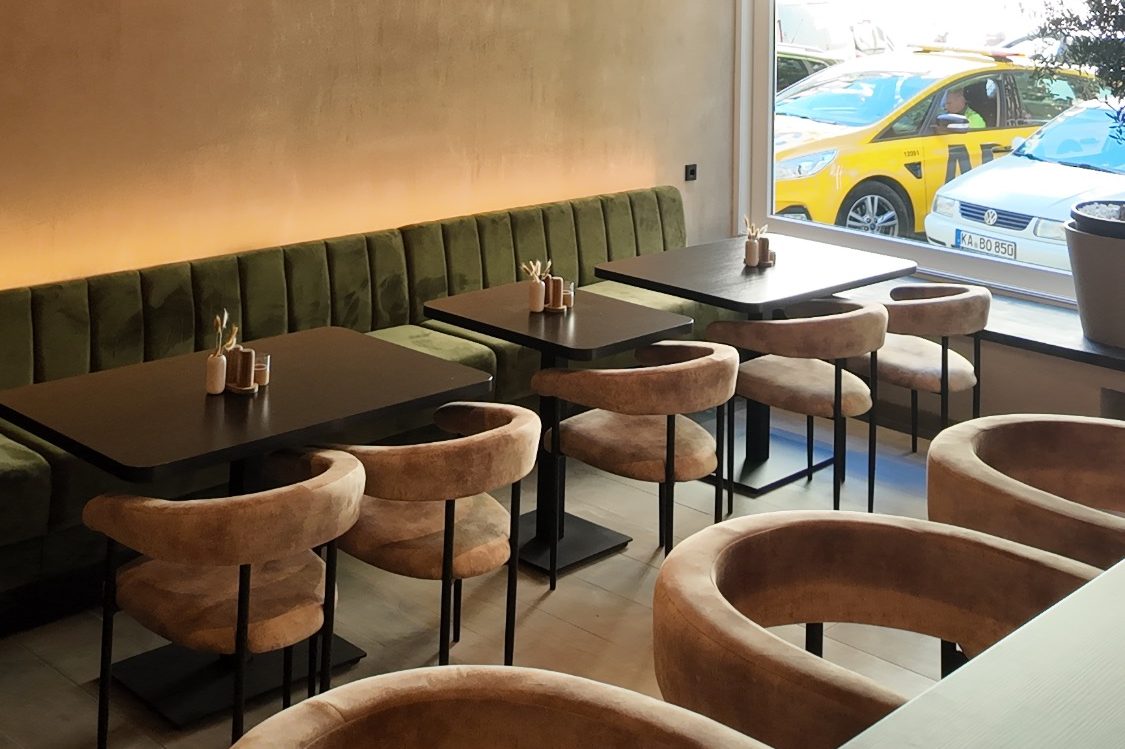 Neues, modernes und schlicht eingerichtetes Restaurant mit Deutsch-Balkanischer Küche, sowie Bar.